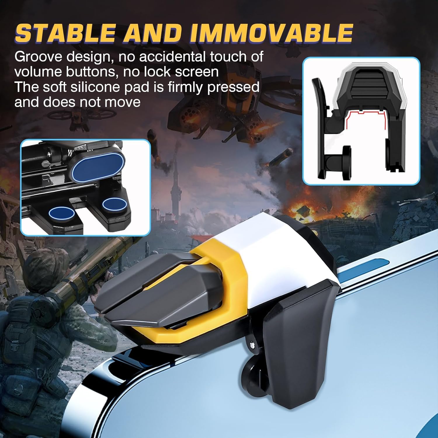 - [Excellent deign] This mobile phone trigger is made of high-quality ABS and alloy. The elastic clip design will not block the screen view. The internal groove design can effectively prevent accidentally touching the side buttons. The design and workmanship are perfect