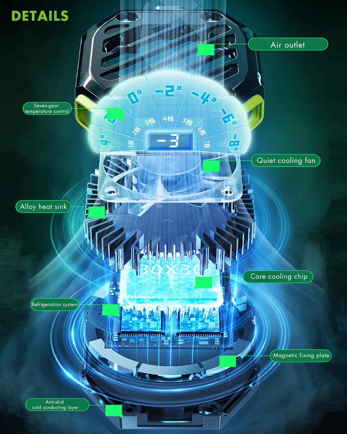 - ☑️【Real-time Battery-Gear Display】 cell phone coolers use the latest in semiconductor cooling radiator technology to instantly cool your device, keeping your mobile device at optimal temperature, and with the real-time Battery dispaly feature, you can feel and see the performance boost.