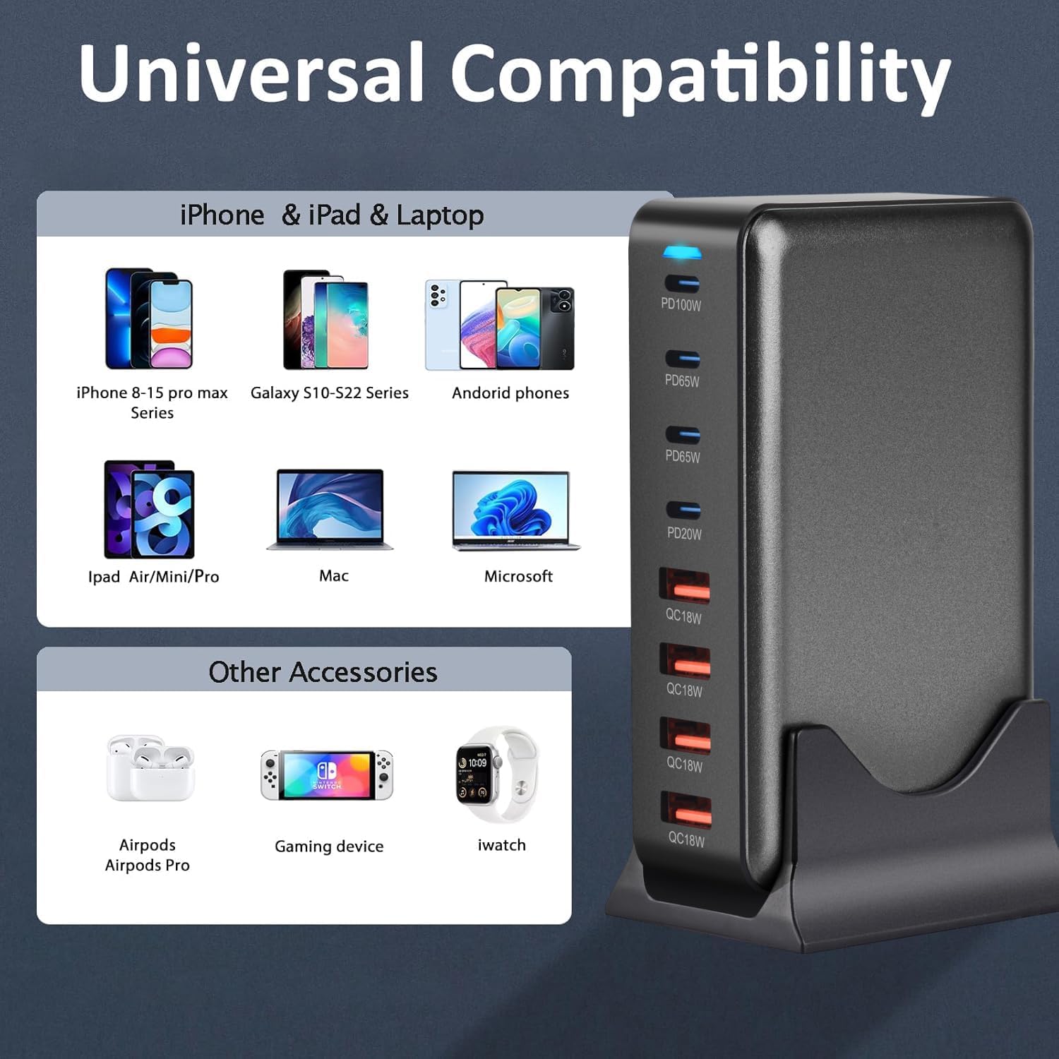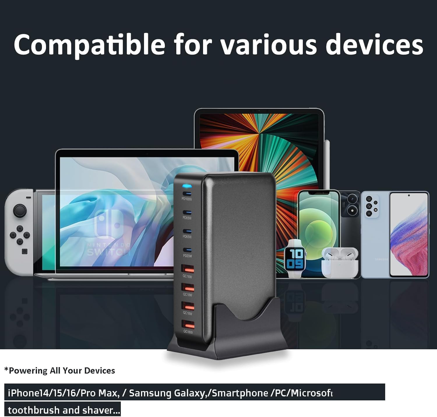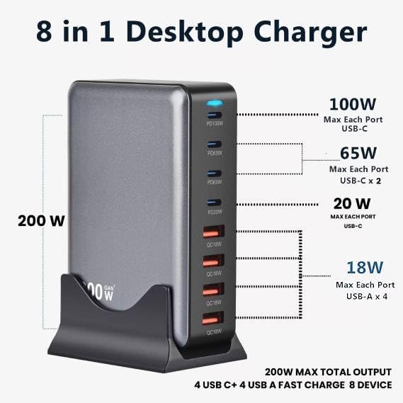 Cubonic USB C Charger Block 200W Charging Station Hub ,8 Port